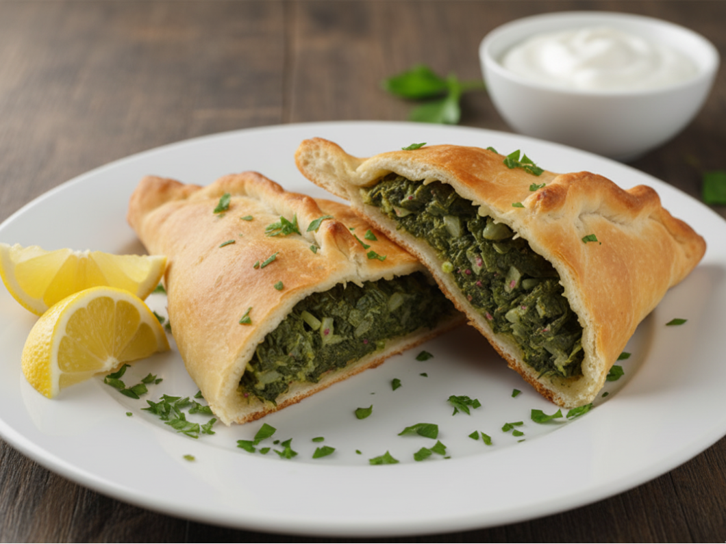 A vibrant Lebanese-inspired pastry made with sautéed spinach, caramelized onions, and a touch of tangy sumac — wrapped in soft dough and baked until golden. Each bite brings a perfect balance of freshness and warmth, delicious on its own or paired with labneh, feta, or a bowl of soup.